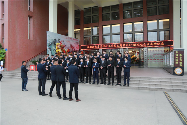 为庆祝我校大厨精英17-08班学生赴嘉兴隆聚餐饮集团,4月26日,在创指导中心的安排下,我校举行一场毕业学子欢送会。