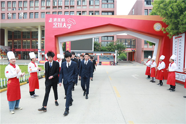 我校中餐专业学生夹道欢送这些学长们,他们的目光里透露着一种坚定与期盼,仿佛也看到了未来的自己将从这里顺利启航。
