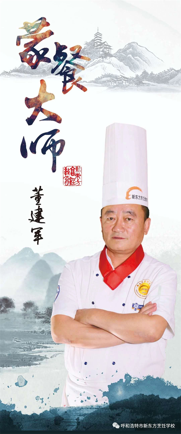董大师自建校便一直任教于呼和浩特新东方烹饪学校,是最早驻扎新东方的一批教师,从事烹饪教育多年,他对教育事业尽心竭力,对他的学生有着难以割舍的爱,将自己的精湛技艺倾囊相授,以此为乐,以此为荣,让美食传承的使命一脉相承! 他凭借着精湛的技术获得了学生们的良好口碑,兢兢业业,一丝不苟,以身作则是同学们对他的评价,无论是对教学还是对菜品,他都严格要求。他是严师,更是益友。对于学生们来说,董老师的严格要求是对厨师职业的尊重,更是对学生们负责。