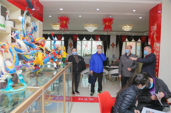 徐永记校长等一行领导的陪同下,先后参观了咨询中心、线上直播课堂、面塑作品展示区、实训大楼、创指导中心、