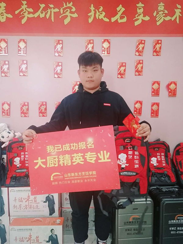 来自山东临沂的陈海波同学,即将参加高考,面对高考的压力,他选择学一门技术,用两年的时间“技能+”双丰收。陈海波同学说,高中教室的枯燥与束缚让他感到疲惫,也许是对书本课程的理论学习提不起兴趣,恰好自己又对厨师感兴趣,通过来校实地考察他发现山东新东方烹饪学院将理论知识、实践操作完美结合,让原本不爱课本知识的他能在最短的时间内感兴趣,从而能更自主、认真的学习,在与与父母商量并得到他们的肯定后,转学到了山东新东方,选择了大厨精英专业。