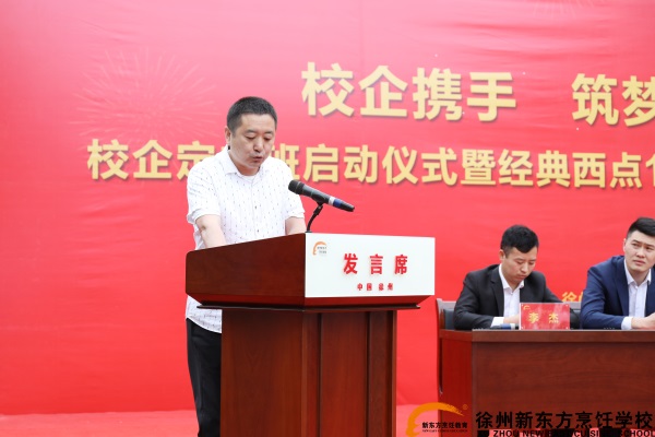 北京好利来北方区域HR总监赵鑫表示:徐州新东方烹饪学校凭借其一流的师资团队,先进的管理教学模式,一直走在餐饮培训教育的前列,在业界广受好评和认可。与贵校合作定向培养优异西点人才,为优异西点人才提供一个学以致用、成就事业的发展平台,同时,优化了企业用人模式,实现了学校教育与企业现代化管理相融合,这是校企互利共赢的项目,希望与徐州东方烹饪学校保持长期友好的关系。