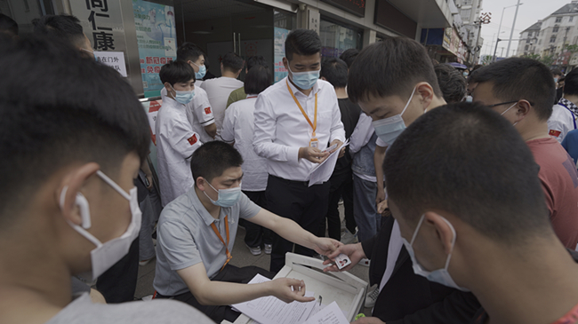 学校领导带领学生进行疫苗接种登记